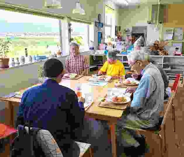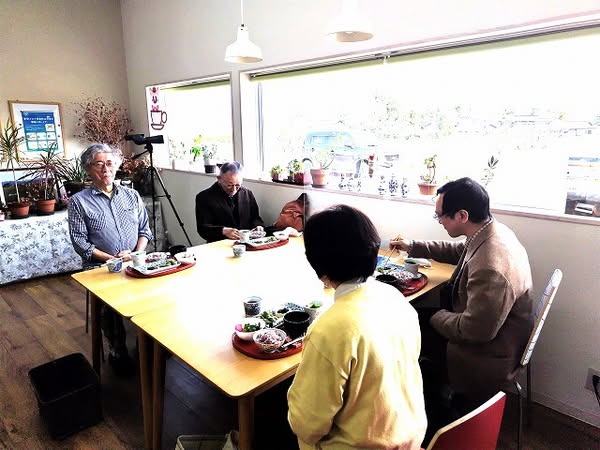 当カフェは不定期開催です。年に二回程、平日の昼に食事しながら語り合います。